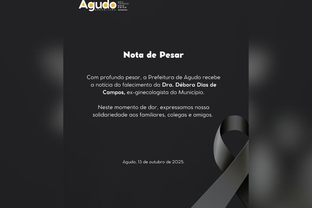 A Prefeitura de Agudo emitiu nota de pesar, expressando condolências à família, amigos e colegas.
