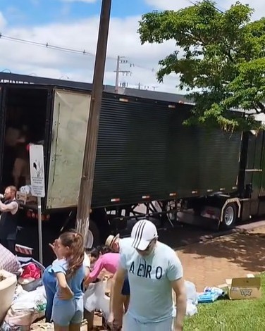 O caminhoneiro Solitário Mudança deu um verdadeiro show de empatia e humanidade ao usar sua própria carreta, junto com a ajuda de seus seguidores e moradores de Toledo-PR, para levar doações às famílias afetadas pelo tornado em Rio Bonito do Iguaçu-PR.
