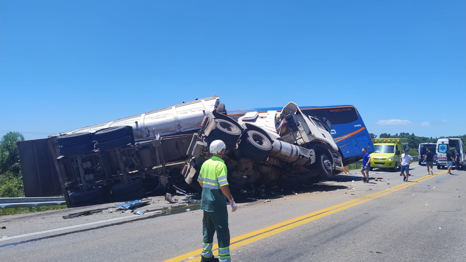 ➡️ Subiu para 11 o número de mortos na colisão entre caminhão e ônibus no km 491 da BR-116, em Pelotas.